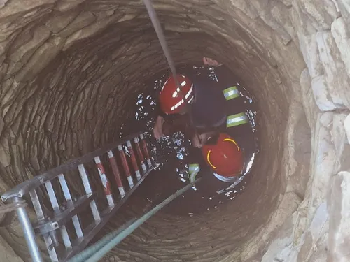 Unul dintre pompieri a coborât în fântână și, ajutat de colegi, a reușit să îl aducă la suprafață pe bărbat. Acesta era în apă până la brâu și era conștient.