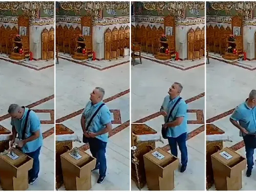 Un bărbat a fost prins cum încerca să fure bani din cutia milei cu un umeraș de sârmă. „Se închina”