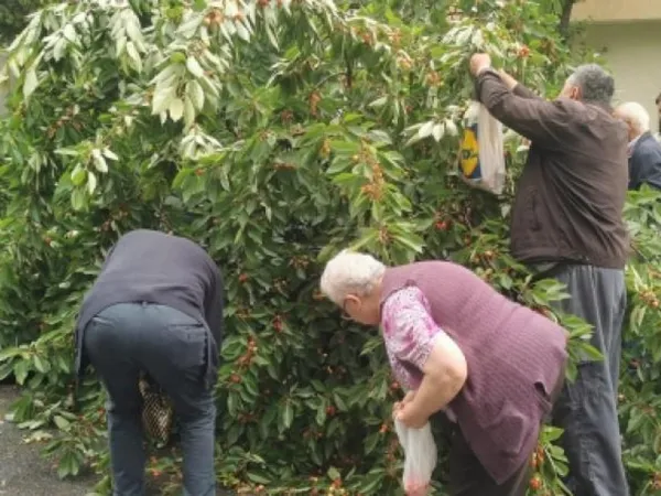 Oamenii „au acționat prompt”, fără să ezite, și au început să adune cireșele, ignorând total momentul care putea fi o tragedie în cazul în care în autoturismul distrus de pom se aflau persoane.