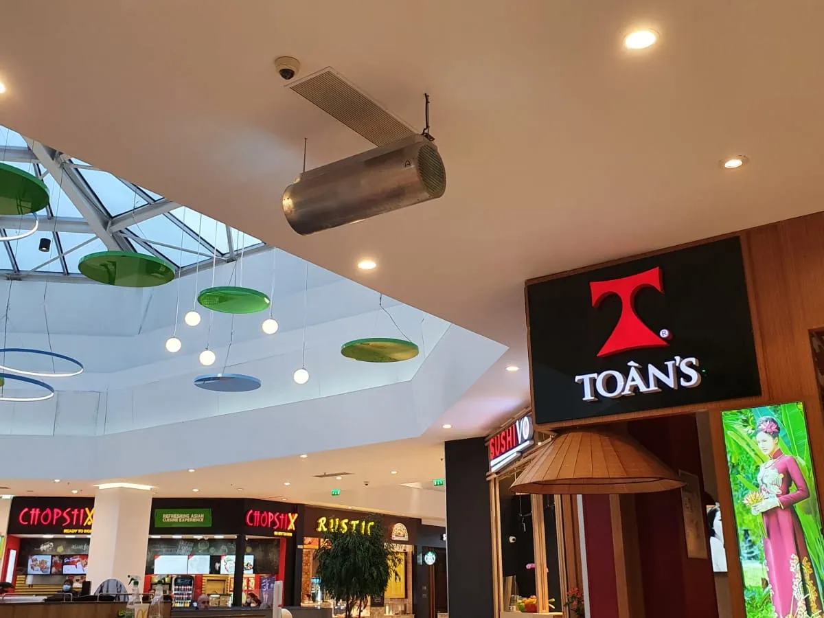 Dispozitiv de decontaminare aer cu raze UV în Băneasa Shopping City/FOTO: Alfa Tech Med Care