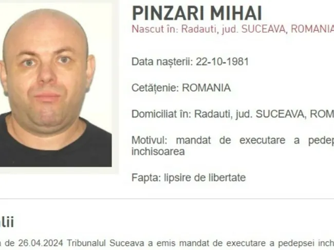 „În cursul aceleiași zile de 26.04.2024, în jurul orei 17:00, față de bărbatul de 43 de ani, Tribunalul Suceava a pronunțat sau sentință definitivă într-o altă cauză penală, acesta fiind condamnat la pedeapsa de 4 ani de închisoare cu executare.