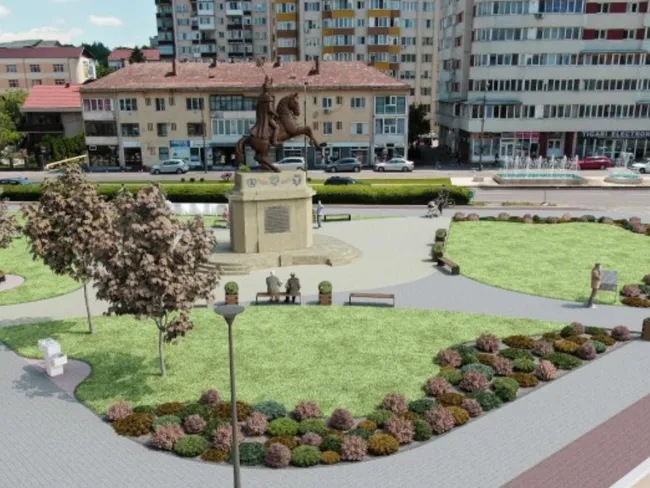 Totodată, în jurul statuii se va realiza un mic parc, cu bănci de odihnă, fântâni arteziene şi iluminare ambientală.