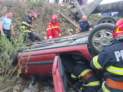 Momente de groază pentru un cuplu din județul Suceava. Mașina în care se afla a căzut într-un râu. Totul, după ce podețul din lemn pe care soții treceau, în acele momente, a cedat. Zeci de pompieri au intervenit.