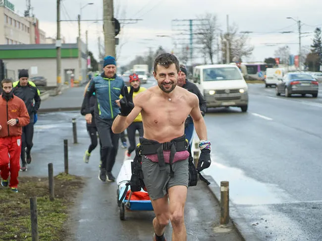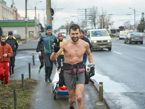 „L-am găsit pe Vlad în plină formă în prima parte a ultra-maratonului de 700 de kilometri care îl va purta din Cluj până la Constanța. Până pe 8 martie, când va ajunge la destinația finală, clujeanul face în medie aproape o sută de kilometri pe zi. Anul trecut a alergat cu același scop, dar în condiții total diferite.