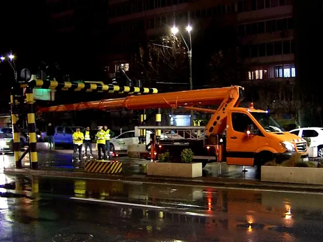 În încercarea de a intra in Pasajul Unirii, cisterna de gaz s-a oprit în ultimul punct de siguranţă, chiar aici, în poarta de gabarit, pe care nu a reuşit să o dărâme.