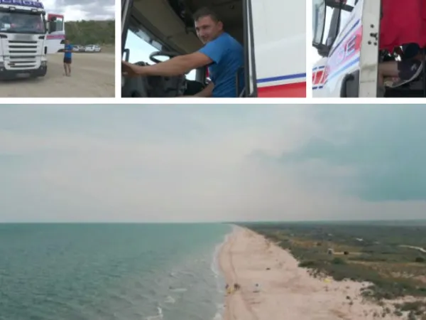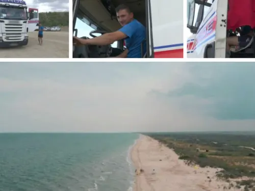 Un șofer din Bacău și-a adus familia cu TIR-ul pe plaja sălbatică de la Corbu. Dialog incredibil