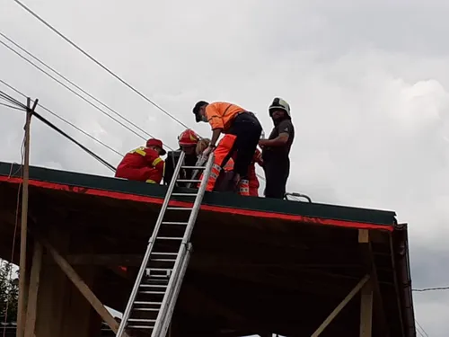După ce anchetatorii vor efectua cercetările cu privire la împrejurările în care s-a produs evenimentul, pompierii vor coborî victima de pe acoperişul construcţiei şi o vor preda unui echipaj de la Serviciul de Medicină Legală.