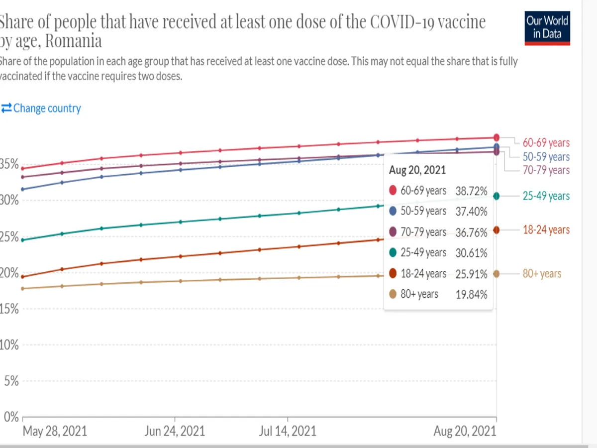 Grupa de vârstă peste 80 ani, populație vaccinată, România – 19%; Ungaria – 75%.