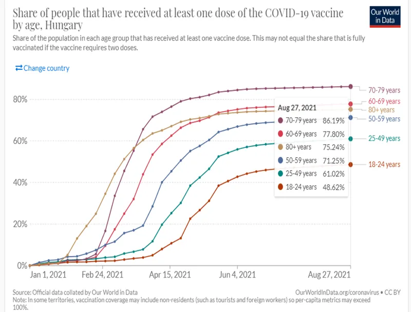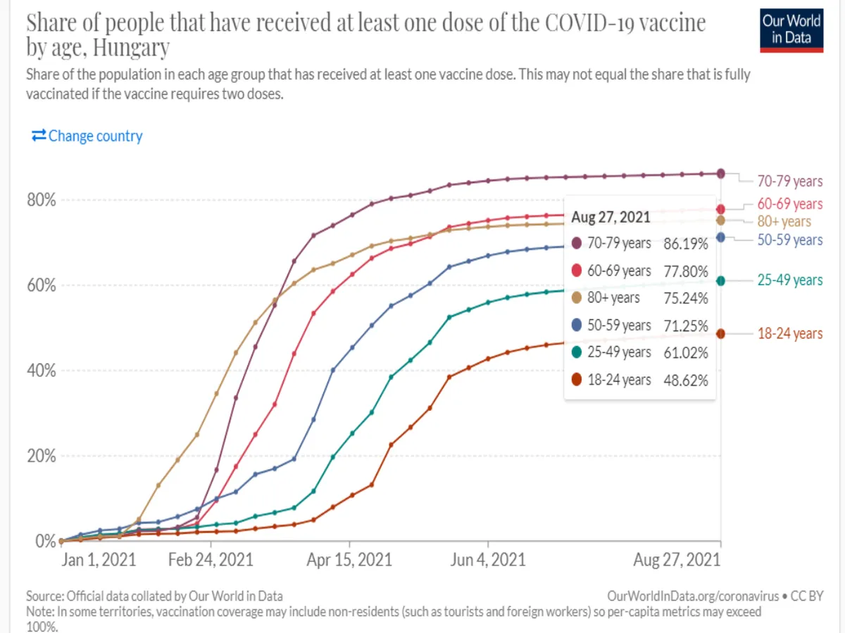 Vaccinarea pe grupe de vârstă este puternic în favoarea Ungariei.