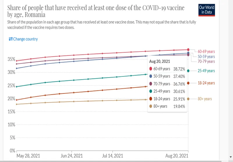 România a vaccinat 26% din populație cu schema completă și 27% din populație cu o singură doză.