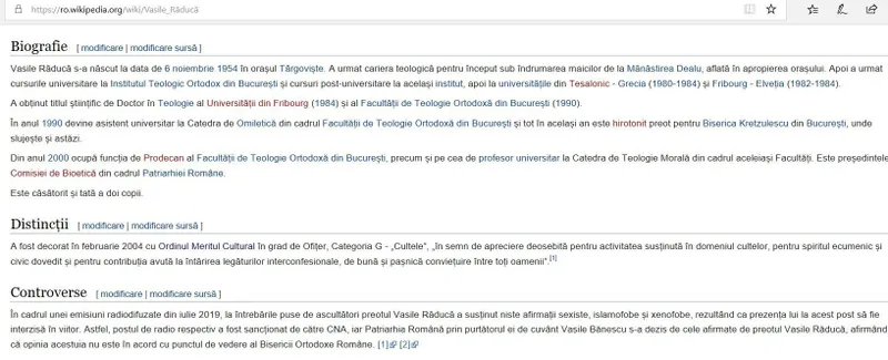 Pe Wikipedia, biografia preotului a fost deja updatată cu scandalul produs de declarațiile la Radio Trinitas.