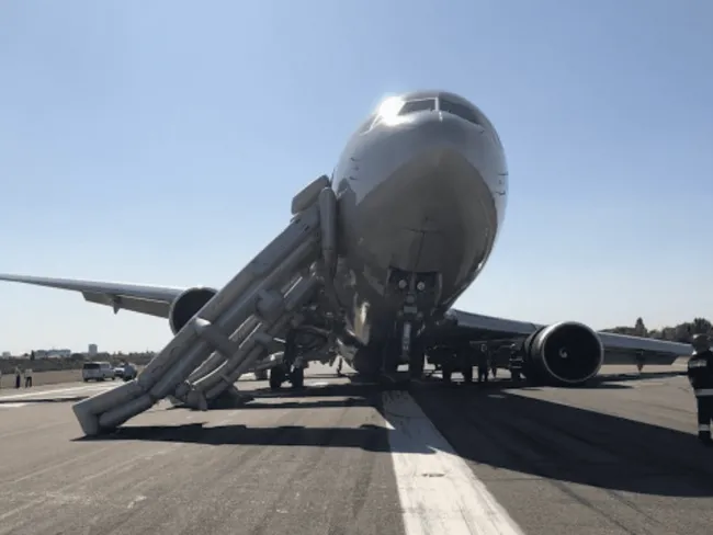 Un avion Boeing 767 care aparține companiei Omni Air a rămas pe pista Aeroportului Băneasa, după ce trenul principal de aterizare din partea stângă a suferit avarii la aterizare.