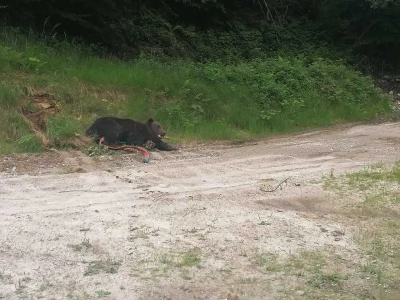 Urs prins într-un cablu, la 100 de metri de un sat din Gorj. Fusese relocat la 20 km de localitate