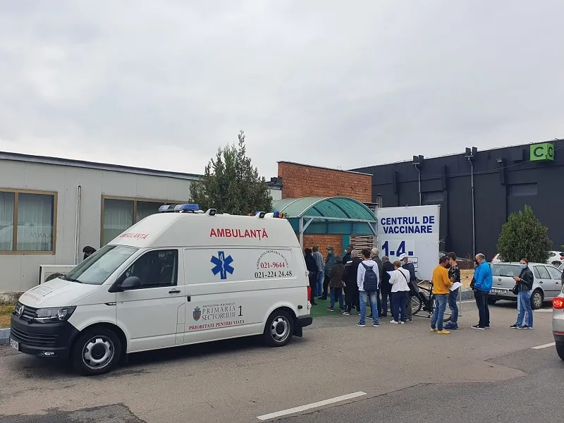 În jurul orei 10.00, la intrarea în centrul de vaccinare de la Romexpo erau 10-12 persoane, de vârste diferite, majoritatea așteptând să primească a trei doză de vaccin Pfizer.