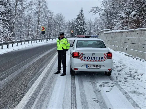 S-a format o coloană de maşini în mişcare și de la ieşirea din Azuga pana la Buşteni, iar poliţiştii rutieri acţionează pentru fluenţa traficului. Totodată, pe raza localităţilor Azuga si Buşteni ninge slab şi vântul viscoleşte zăpada, a menţionat IJP Prahova.