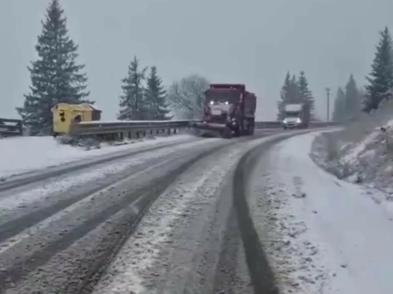 ”ATENŢIE, ŞOFERI! În mai multe zone se înregistrează lapoviţă şi ninsoare, iar drumurile pot deveni alunecoase. Vă rugăm să vă asiguraţi că aveţi anvelope de iarnă montate şi că adaptaţi viteza la condiţiile din trafic”, este avertismentul transmis, duminică seară, de către Poliţia Sibiu.