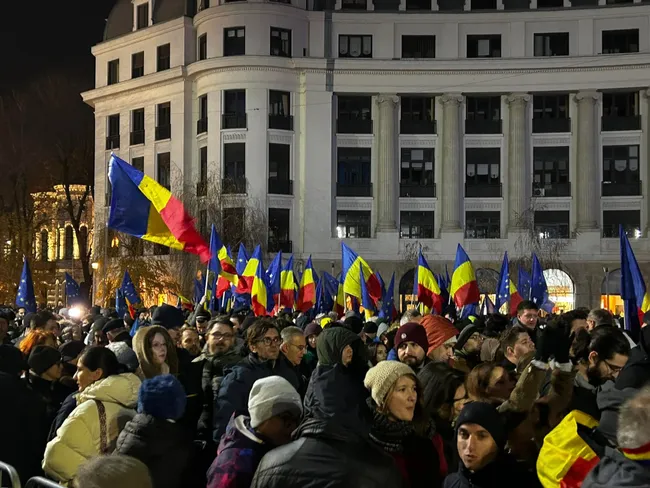 „România speră”, un miting pro-democrație organizat în sprijinul Elenei Lasconi înainte de al doilea tur al alegerilor prezidențiale, a debutat joi, 5 decembrie, la ora 19:00, în Piața Universității din București.