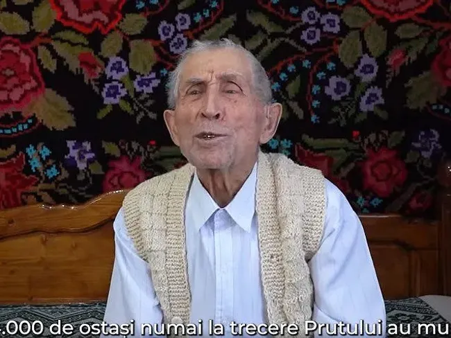 În escadronul meu am fost 197 de soldați și am venit înapoi 27. Am luptat în Rusia, în Ungaria, Cehoslovacia, până la Munții Tatra în Germania am ajuns. Trebuia să am mare grijă. Dacă oleacă nu eram atent și scoteam capul afară, acum nu mai eram. Erau doar morți, peste tot. Mă gândeam că n-o să mai văd România niciodată. Am plecat de pe front pe 8 mai și am ajuns în țară pe 8 august, am venit pe jos. Iar acasă era jale. Războiul...asta aduce: lipsă și sărăcie. S-a terminat războiul și s-a liniștit. Sunt care s-au născut atuncea și sunt oameni în vârstă acum."