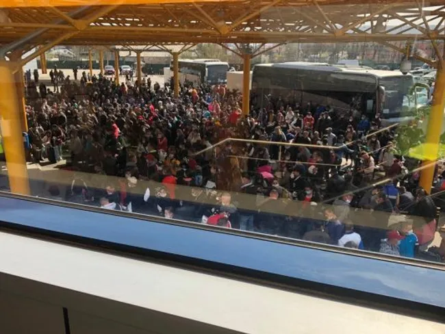VIDEO 2000 de oameni se înghesuie în fața Aeroportului din Cluj să plece la muncă în Germania