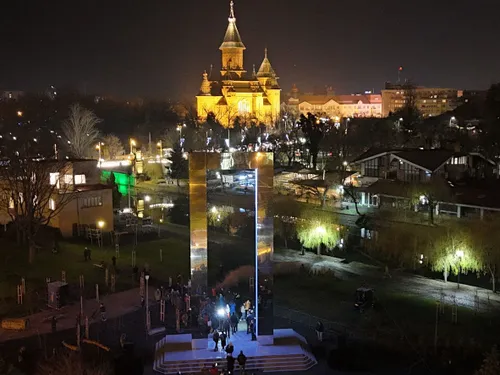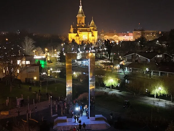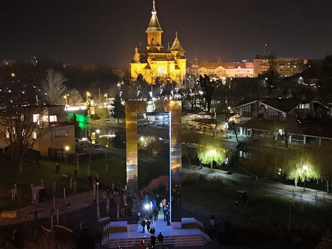 Azi am pornit instalaţia «Portalul Libertăţii». Un liant între trecut şi viitor, o operă de lumini şi de sunete din Timişoara lui Decembrie 1989.