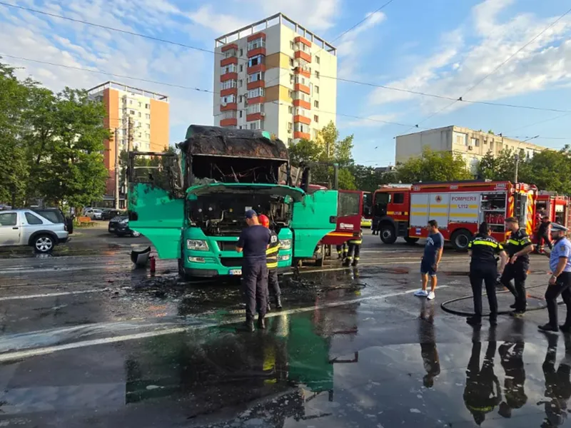 Un accident rutier în care au fost implicate un autocamion şi două autoturisme s-a produs vineri, într-o intersecție din Iaşi, fiind urmat de un incendiu puternic.
