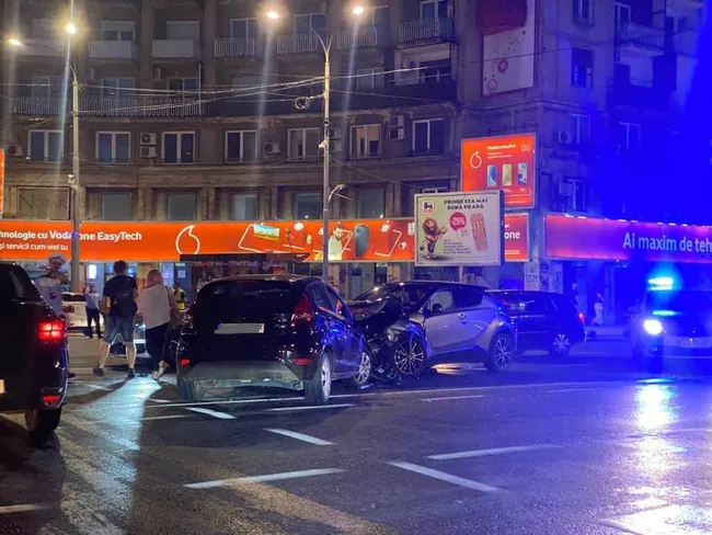 Un grav accident rutier a avut loc în Piața Romană din București. Un șofer inconștient a vrut să facă stânga pe interzis și s-a oprit în mijlocul intersecției. În încercarea de a-l evita, șoferul din spate a tras stânga și a intrat frontal într-o mașină de pe contrasens.