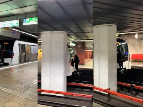 Un bărbat este căutat de polițști după ce a fost filmat în spatele unui metrou aflat în mișcare. Imaginile au fost înregistrate în stația Basarab.