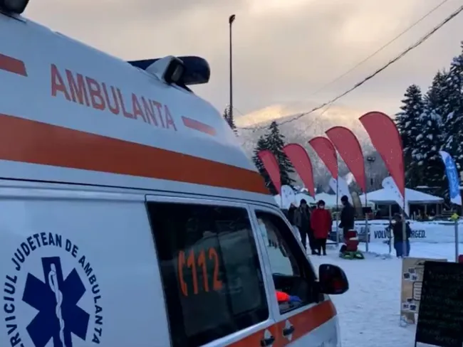 O ambulanță a trebuit să intervină duminică pe pârtia Kalinderu, după ce un copil s-a accidentat, dar mai mulți turiști s-au pun în calea acesteia. Revoltat din cale afară, unul dintre turiști a aruncat cu vin fiert pe geamul ambulanței.
