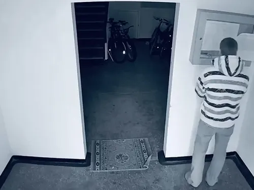 VIDEO Bărbat filmat în timp ce fura un recipient cu dezinfectant dintr-un bloc din Suceava