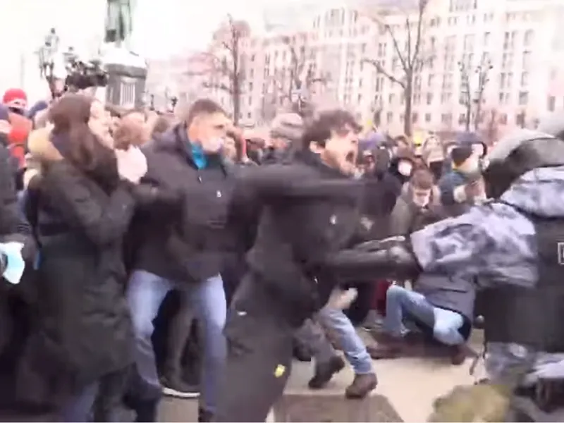 VIDEO Bătaie ca în galele de K1 între manifestanții ruși și poliție la protestele anti Putin