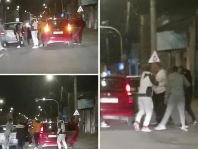Imaginile surprinse de un alt şofer arată mai mulţi bărbaţi cate se bat în mijlocul străzii, autoturismele implicate în accident fiind oprite, pe avarii, pe carosabil. Abia la apariţia poliţiştilor scandalagiii s-au calmat.