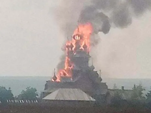 Imagini foto și video cu biserica din lemn în flăcări au apărut sâmbătă pe rețelele sociale, iar consilierul prezidențial ucrainean Mihailo Podoliak susține că mănăstirea de care aparține devenise adăpost pentru refugiați.