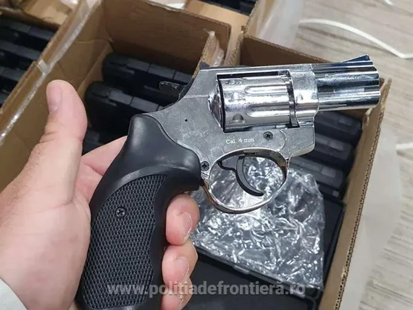 "Structurile Ministerului Afacerilor Interne au realizat o captură record de arme de foc letale, de 2.850 de pistoale noi, cu glonţ. Astfel, luni seară, poliţiştii de frontieră şi lucrătorii punctului de frontieră Isaccea, au depistat, ascunse într-un camion condus de un cetăţean ucrainean, cele 2.850 de pistoale cu glonţ, calibru 4 şi 4,5 mm. Armele au fost confiscate imediat în vederea confiscării", a spus Lucian Bode, într-o declaraţie la sediul ministerului.