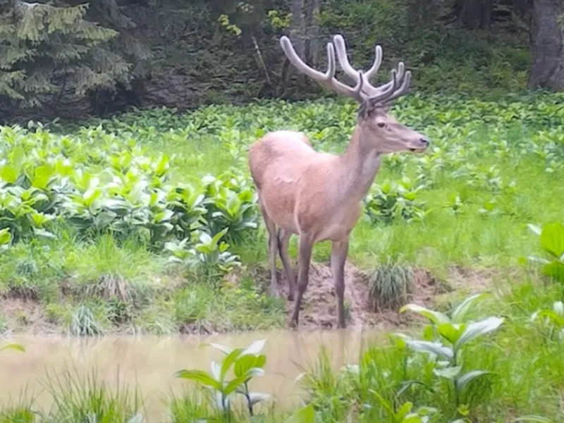 Un cerb spectaculos a fost filmat de o cameră de supraveghere a faunei la o scăldătoare din Munții Apuseni. Mai este puțin timp până ce începe boncănitul.