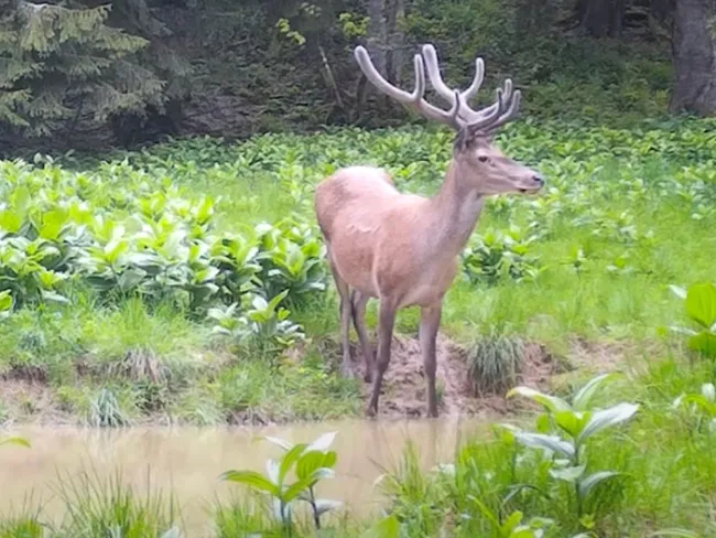 Cerb surprins la „scăldat” în Munții Apuseni. Se pregătea pentru boncănitul anual