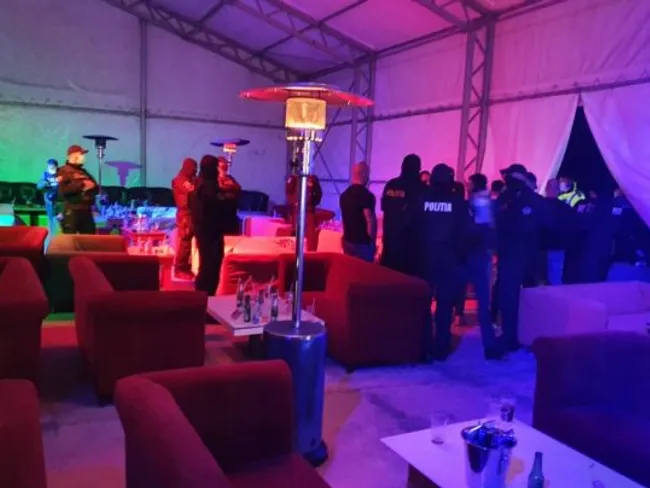Zeci de polițiști au descins sâmbătă noaptea într-un local din județul Olt unde petreceau 170 de persoane. Toți tinerii găsiţi în club au fost identificați, puși la zid și percheziționați. Valoarea amenzilor s-a ridicat la aproape 40.000 lei, conform adevarul.ro.