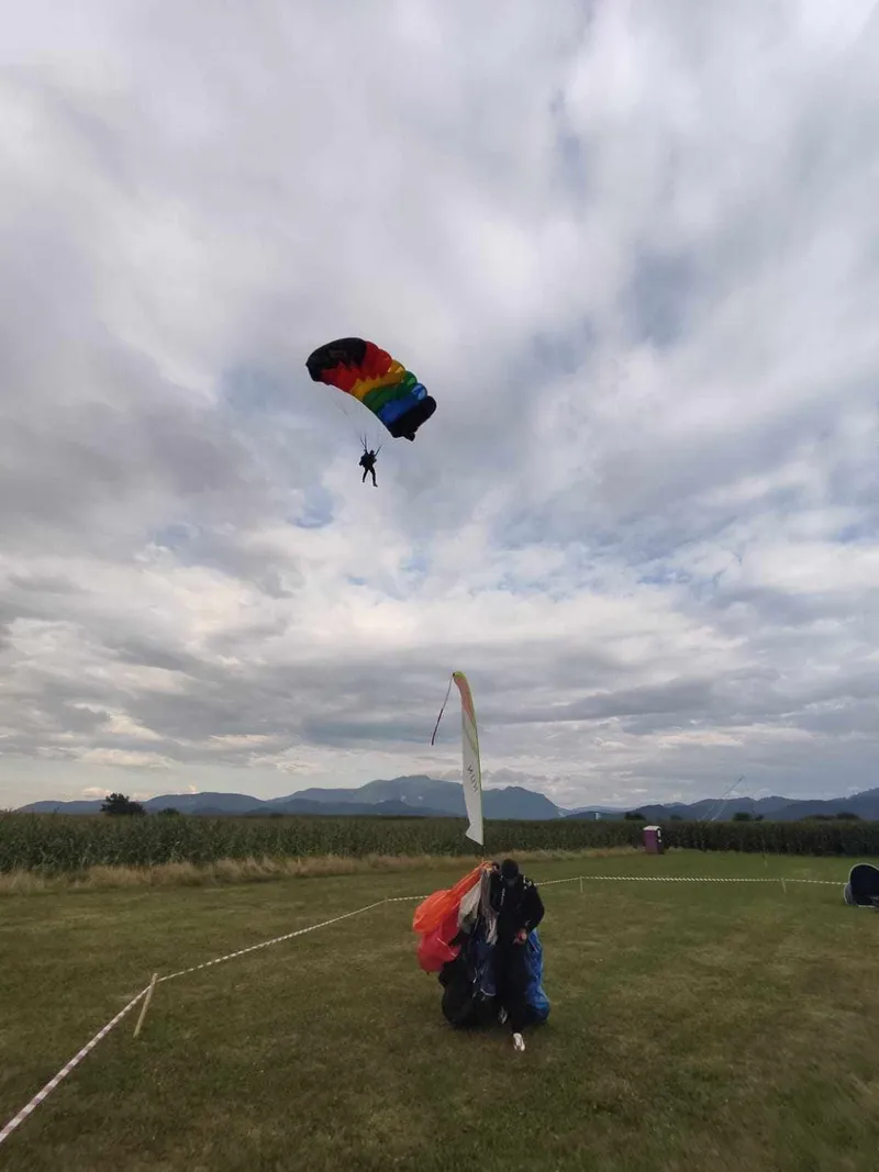 Concurs internațional de parașutism-Zărnești. Fiica generalului Grigore Baștan, salt în tandem de la 3.000 metri. În perioada 01-03 septembrie 2023 pe Aerodromul „Piatra Craiului” Zărnești se desfășoară concursul internațional „EAST EUROPEAN ACURACCY CUP”.