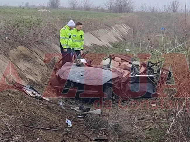 VIDEO Constanţa: Trei bărbaţi au murit după ce s-au răsturnat cu maşina într-un şanţ