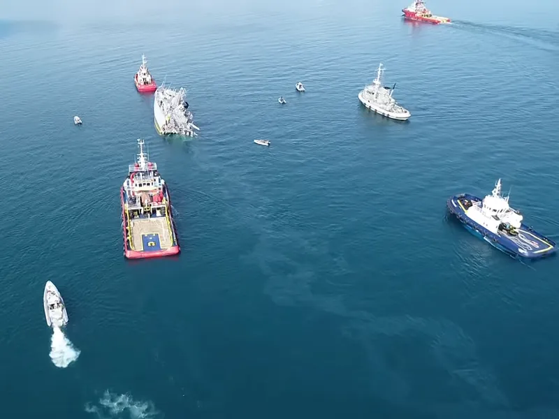 VIDEO Cum a fost ruptă în două o navă militară lovită de un vas comercial portughez în Grecia