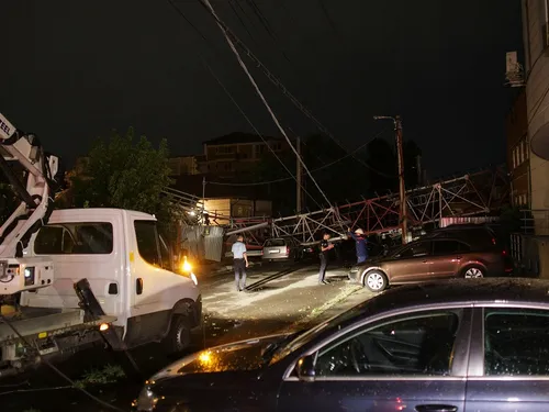VIDEO Cum a răvășit Bucureștiul o furtună iscată din senin. Antenă cât 8 etaje, prăbușită peste case