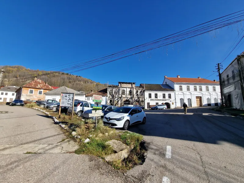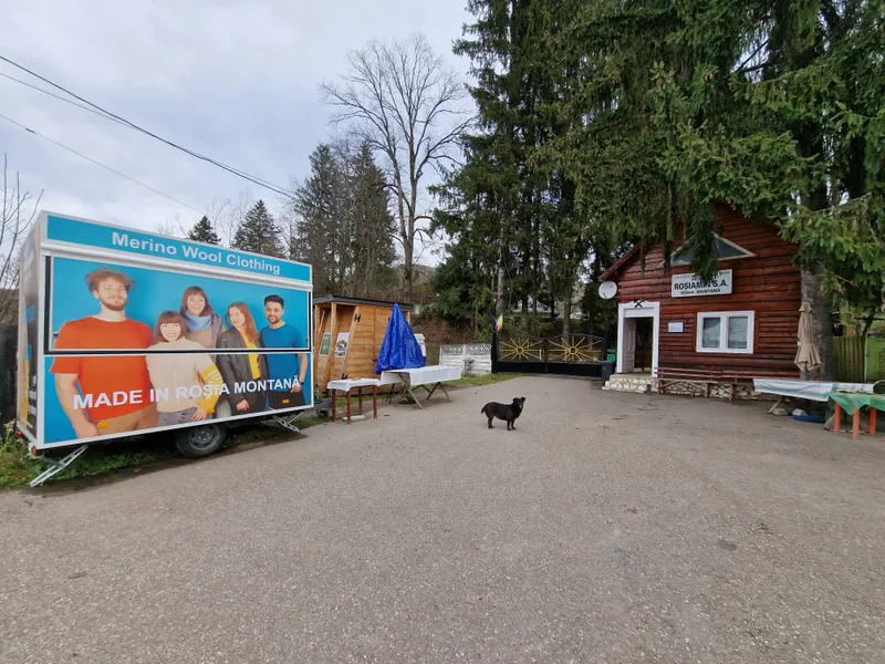 La jumătatea distanței dintre cele două, se află singurul magazin deschis din localitate, Transmontana Shop, unde e și sediul uneia dintre organizațiile de mediu, acuzate constant că ar fi fost finanțate de miliardarul George Soros.