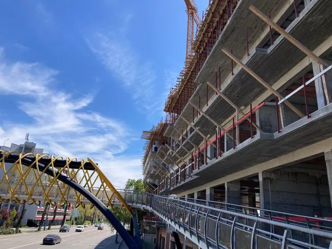Un complex turistic din stațiunea Mamaia ar trebui să fie gata în octombrie anul acesta. Ar fi o singură problemă dar care nu pare să deranjeze pe nimeni. O clădire este lipită de o pasarelă pietonală care traversează bulevardul principal.