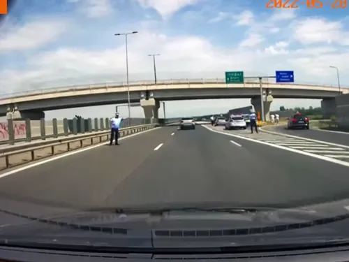 VIDEO Cum îți pune un polițist viața în pericol. Te oprește, pe autostradă, de pe banda de viteză