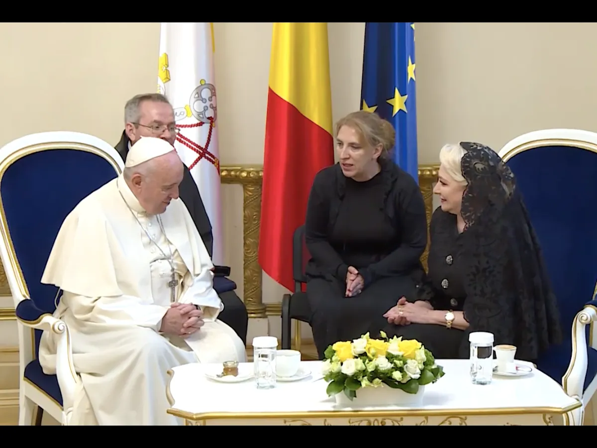 La Cotroceni, premierul Viorica Dăncilă a ascultat discursul Suveranului Pontif fără a avea nevoie de traducere simultană în căști. Logic, asta a fi putut însemna că e fluentă în italiană. Ceva mai târziu, însă, când a trebuit să vorbească cu Papa, a avut traducător.