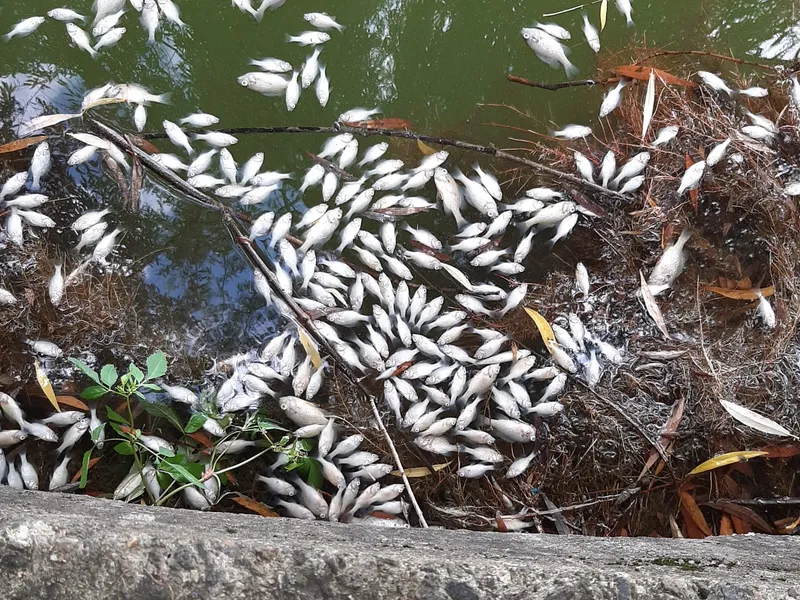 Canicula de săptămâna trecută are efecte şi asupra mediului acvatic. Mii de peşti dintr-un lac din Cluj-Napoca au murit zilele trecute, cel mai probabil - spun specialiştii - din cauza lipsei de oxigen.