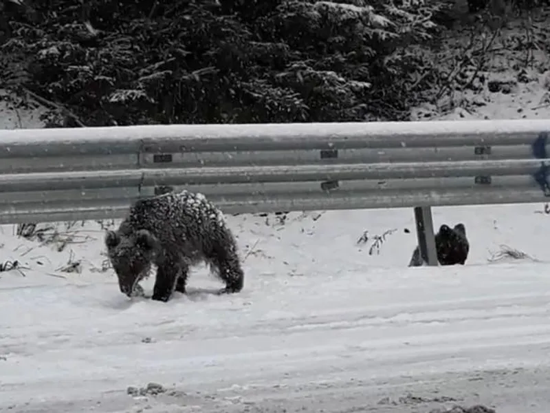 Doi pui de urs au fost surprinși jucându-se în zăpadă, la marginea unui drum național din Vrancea. Imaginile au fost publicate, pe Facebook, de Asociația pentru Conservarea Diversității Biologice care le atrage atenția șoferilor să circule cu grijă pentru a evita un accident.