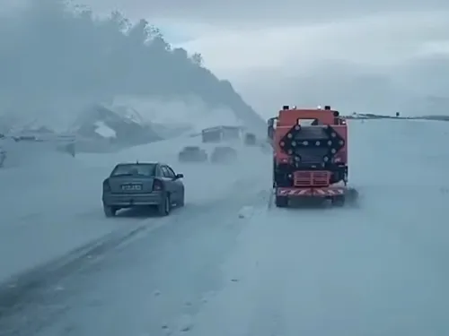 În imagini, însă, apare și „Dorel”. Ajuns șofer de freză de deszăpezire, acesta îndepărtează zăpada de pe drum aruncând-o tot pe șosea, precum și peste mașinile care depășesc utilajul.