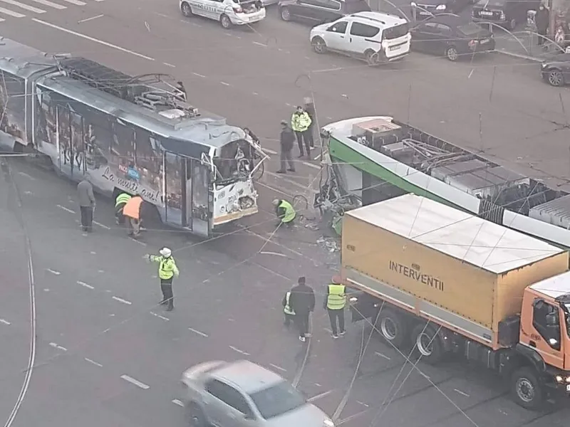 VIDEO Două tramvaie, unul nou și unul vechi, s-au lovit frontal în București, pe Ștefan cel Mare