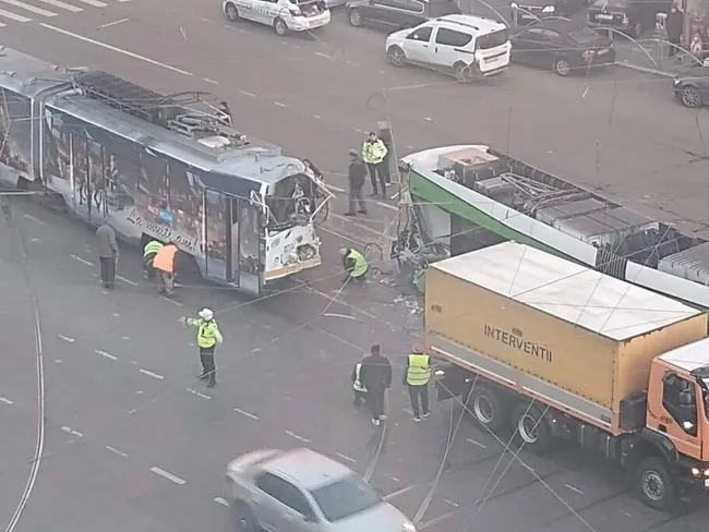Două tramvaie, unul nou și unul vechi, s-au lovit frontal în București, pe Ștefan cel Mare, la intersecția de la Lizeanu. Trei oameni au ajuns la spital, cei doi vatmani și un călător.