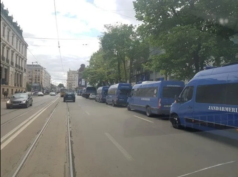 De altfel, de dimineață, jandarmii au încercat să-i evacueze pe manifestanţii care au reușit să se plasese la locul unde trebuia să vină Dragnea.